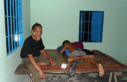 Người cha già bị mù 2 mắt đang chăm sóc con bị bệnh tại nhà