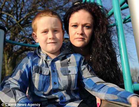 Bradley chụp với mẹ Toni, cậu bé không được phép chơi ngoài sân để tránh trạng thái phấn khích