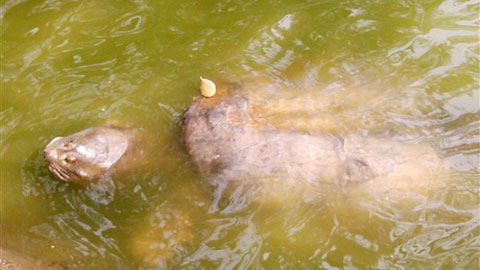 “Tôi đang đi dạo quanh Hồ cùng mấy anh em trong đơn vị thì thấy mấy người xúm lại bờ hồ bảo 3 Rùa nổi. Tôi vội chạy lại xem và tranh thủ lấy điện thoại ra chụp lại những hình ảnh quý giá về cụ.” - Hạ sĩ Lê Văng Tòng (đến từ Quân khu 7, ra tham dự Hội thao TDTT toàn quân tại Trung tâm huấn luyện Quân sự Quốc gia 4 của Quân đội (Mỹ Đức, Hà Nội) chưa hết vui mừng cho biết.