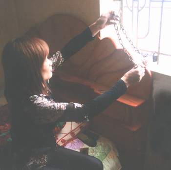 Đinh Thị H. giơ chiếc xích sắt đă từng “làm bạn“ với cô suốt một thời gian dài để tự cai nghiện. Ảnh: Hoài Thanh