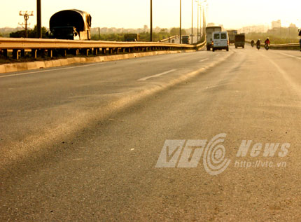 | | Những vệt trồi, lún kéo dài cả km trên mặt cầu Thanh Trì. |
