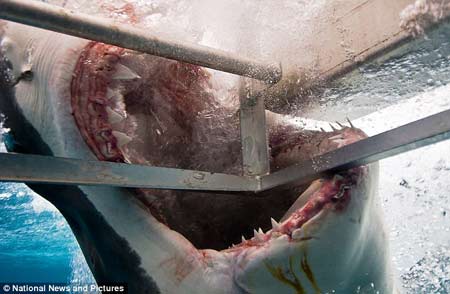 Nhiếp ảnh gia Julian Cohen đã mạo hiểm nhốt mình trong một chiếc lồng sắt trên đảo Neptune ở Nam Úc và chờ đợi một con cá mập khổng lồ tới tấn công để có được những bức ảnh cận cảnh.