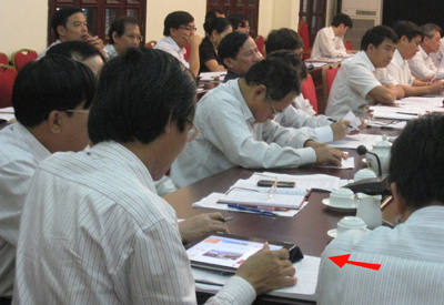 Một số quan chức Hà Tĩnh người thì xem ipad, người thì gục đầu xuống ngủ trong phiên họp. (Hình: Báo Doanh Nhân sài Gòn)