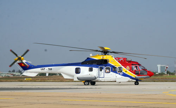 Máy bay EC-225 có tải trọng 11 tấn, tốc độ bay lên tới 260 km/giờ, có thể bay xa 520 dặm. (ảnh: Nguyễn Long)