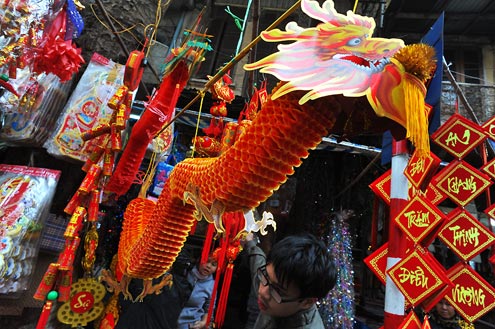 Chuẩn bị cho Tết Nhâm Thìn và ngày lễ Táo quân, sáng 14/1 đông đảo người dân đổ về các con phố Hàng Mã, Hàng Lược (Hà Nội)... để sắm đồ trang trí và bầy ban thờ.