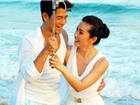 Cả hai ngôi sao nổi tiếng đều ăn mặc trẻ trung với gam màu trắng nhẹ nhàng, thanh lịch, nắm chặt tay nhau thật tình tứ và vui chơi trên bãi biển xinh đẹp Tam Á (Trung Quốc).