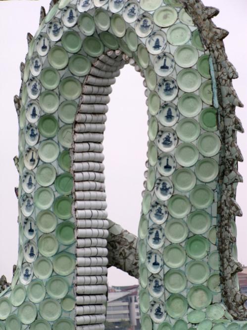 Đôi rồng gốm sứ khổng lồ dài 35m, cao hơn 8m, được các nghệ nhân Bát Tràng (Hà Nội) chế tác từ 6.000 chiếc đĩa và hơn 4.000 cốc nước có men đặc biệt.