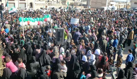 Một cuộc biểu t́nh phản đối Tổng thống Syria Bashar al-Assad ở Marat al-Numan, gần tỉnh Idlib ở phía bắc, hôm 5/2. (Ảnh: Reuters)