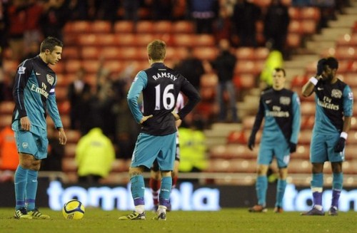 Cho đến khi trận đấu kết thúc, Arsenal đã không thể làm gì để gỡ gạc lại chút thể diện dù chỉ là một bàn thắng danh dự. Cách biệt 2 bàn được giữ nguyên cho đến hết trận đấu, và Sunderland là đội đi tiếp, Arsenal ngậm ngùi rời sân Ánh Sáng khi gần như đã trắng tay mùa bóng thứ 7 liên tiếp. Sự khắc khoải hiện rõ trên khuôn mặt của Arsene Wenger và các học trò. Họ đã tự thua khi đem nỗi ám ảnh của trận thua AC Milan hồi giữa tuần vào trận. Một bài học mà Pháo Thủ đã nhiều lần trả giá đắt, nhưng xem ra, họ vẫn còn phải trả thêm nhiều lần nữa mới có thể học thuộc.