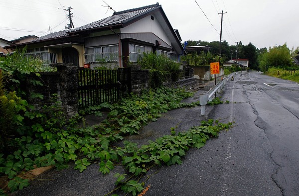 Những dây thường xuân mọc dài từ hàng rào của ngôi nhà bỏ hoang ra tới tận ngoài đường lớn ở thị trấn Tomioka, Fukushima (Nhật Bản) sau thảm họa kép. Không khí u ám tại đây cộng với mùi khó chịu từ xác động vật khiến chúng ta tưởng tượng như đang trong một cảnh phim về zombie nào đó.