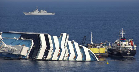 Costa Concordia bị lật nghiêng ngoài khơi Italia kể từ hôm 13/1.