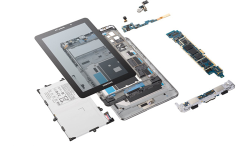 | Tất cả linh kiện của Galaxy Tab 7.7 sau khi được tháo rời. |
