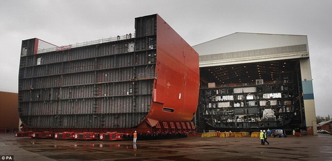 Chiếc tàu chiến lớn nhất và hùng mạnh nhất được đóng cho Hải quân Hoàng gia Anh đã bắt đầu lộ diện thành hình sau khi hai phần lớn nhất của con tàu này được ghép lại với nhau ngày hôm qua (9/4).