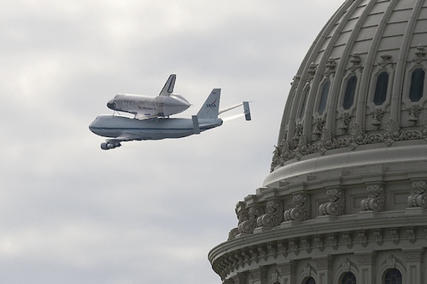 Máy bay "cơng" tàu con thoi bay lượn tới viện bảo tàng