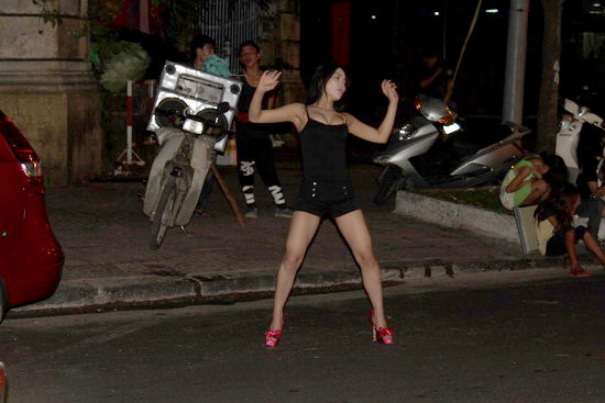 Từ cổ điển như hát rong, chơi đàn dạo cho tới cảm giác mạnh như thổi lửa, nuốt dao lam, những vỉa hè Sài Gòn về đêm giống như một sân khấu tạp kỹ đa dạng và thú vị. Và nếu như cần một tiết mục “đinh” làm điểm nhấn cho những sân khấu vỉa hè, chắc chắn không thể có tiết mục nào vượt mặt màn nhảy sexy… bán kẹo kéo độc nhất vô nhị của Sài Thành.