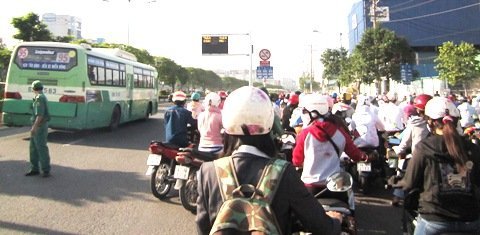 “6h sáng tôi đi từ ngă tư An Sương đến Ngă tư Bảy Hiền mất gần 2 giờ đồng hồ”, chị Vũ Thị Thuận (28 tuổi, ngụ quận 12) nói.