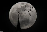 Siêu mặt trăng được nhìn thấy phía trên bức tượng Nữ thần tự do được nhìn từ một khách sạn ở thủ đô Pristina, Kosovo.