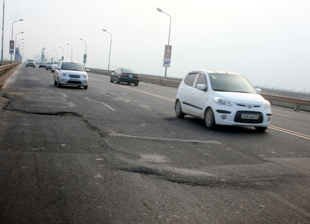 Mặt cầu Thăng Long sau nhiều lần sửa chữa