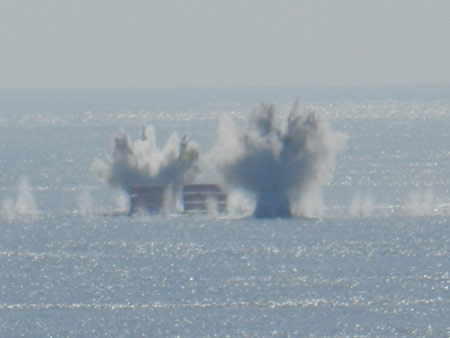 Sau khoảng 30 loạt bắn, tàu địch đã bị bắn hạ