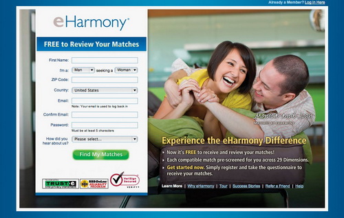 | eHarmony, mạng hẹn hò phổ biến ở châu Âu và Mĩ La-tinh. Ảnh: eHarmony |