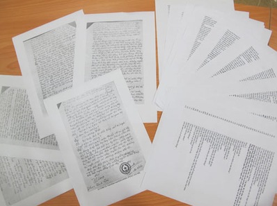 Bên trái: Biên bản mở băng ghi âm lời sinh cung của CQĐT Long An chỉ có 5 trang giấy A4 viết tay, tổng cộng 1.336 chữ. Bên phải: Mở băng gốc lời sinh cung, chúng tôi ghi chép lại một cách trung thực, số lượng chữ lên đến gần 5.000 với 12 trang A4 đánh máy. V́ sao có sự khác biệt này? Ảnh: PHẠM DŨNG