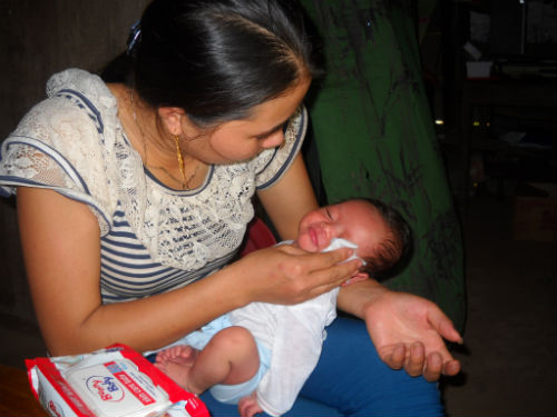 Cháu bé đang được vợ chồng anh Sỹ, chị Lan cưu mang, chăm sóc