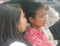 Bà Ngàn (ngồi giữa) bị áp tải lên xe về trại giam. Ảnh: PT