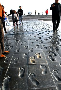 Vào một buổi chiều giữa tháng 6, một làn gió lạnh thổi qua quảng trường trung tâm thành phố biển Đại Liên. Bên cạnh cột Hoa Biểu ở chính giữa quảng trường, khách du lịch không thể không chú ư đến con đường bằng đồng dẫn ra bờ biển.