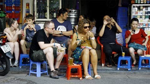 | Khách nước ngoài uống bia "cỏ" ở phố Tây |