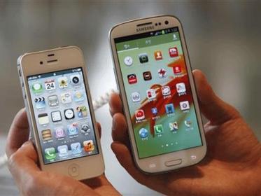 iPhone 4s (trái) và Galaxy S III của Samsung. Ảnh: Reuters