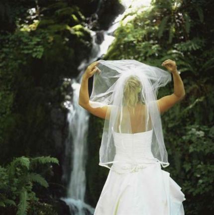 Người phụ nữ này kết hôn vào ngày 9/6 và hôm qua đang mặc váy cưới tạo dáng chụp ảnh tại thác Dorwin ở phía bắc thành phố Montreal.