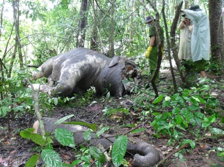 Khi chúng tôi đến, cơ quan chức năng vẫn đang tiếp tục khẩn trương khám nghiệm hiện trường, khám nghiệm tử thi voi chết. Dù đứng khá xa cách vị trí thây voi nhưng do xác voi đang trong quá tŕnh phân hủy, thối rữa cộng với nhiệt độ nắng trưa “dội xuống”, sau đó mưa rừng dầm dề, mùi hôi thối “xốc” lên nồng nặc. Người ta phỏng đoán từ quan sát hiện trường và sự thối rữa xác voi, thời điểm 2 con voi rừng bị chết khoảng một tuần trở lại. Chứng kiến cảnh 2 con voi rừng, một đực, một cái “to đùng” ước tính khối lượng lên đến hàng tấn, thân h́nh trương, nứt, trên ḿnh xuất hiện nhiều vết mổ xẻ, một số bộ phận trên cơ thể voi mất đi, xác 2 con voi nằm ngổn ngang cách nhau khoảng 5m giữa rừng khiến nhiều người chứng kiến không khỏi xót xa.