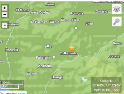 Hồi đầu tháng, hai trận động đất 4.5 xảy ra cách nhau 10 tiếng đồng hồ tại Yorba Linda, không gây ra thiệt hại gì.