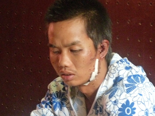 Hoài cuống cuồng không kịp mặc quần, vác dao xông ra chém anh Phương vào phía tai trái rồi bỏ chạy ra ngoài. Ngay sau đó, Hoài bị người dân bắt giữ giao nộp cho cơ quan công an.