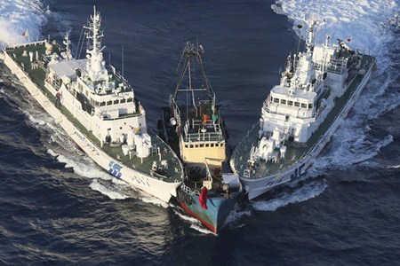 Tàu tuần duyên Nhật Bản chặn bắt tàu cá Trung Quốc. Ảnh wsj.com