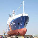 Ngày 23/10, Cục Cảnh sát biển Việt Nam và đại diện nhà máy Z189-Tổng cục Công nghiệp quốc phòng và hãng đóng tàu DAMEN (Hà Lan) tổ chức lễ ấn nút hạ thủy và bàn giao tàu DN 2000 mang số hiệu CSB 8001.