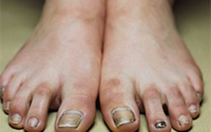 Một dấu hiệu khác ở giai đoạn muộn nhiễm HIV là thay đổi ở móng tay chân, chẳng hạn móng dày lên, cong queo, móng bị chẻ, hoặc biến màu (có các sọc đen, nâu nằm dọc hoặc ngang).