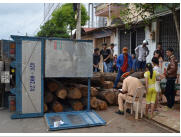Hàng chục lóng gỗ tròn lăn vào nhà khiến người dân hoảng loạn - Ảnh: Thục Anh
