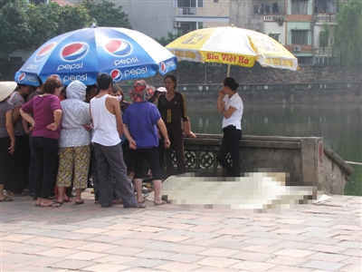 Cách đây khoảng một tháng, vào 11h30 ngày 18-10, nhiều người tham quan Văn Miếu – Quốc Tử Giám cũng phát hiện xác chết dưới hồ Văn.