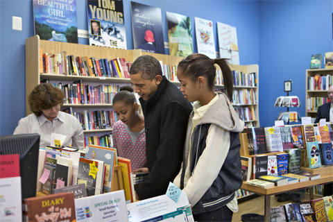 Ông Obama cùng hai con gái Sasha và Malia chiều qua ghé thăm hiệu sách One More Page ở quận Arlington, bang Virginia. Nhà Trắng cho biết Obama đang quảng bá cho chiến dịch mang tên "Ngày thứ bảy cho các doanh nghiệp nhỏ", nhằm động viên mọi người lui tới các cửa hàng bán lẻ nhỏ sau ngày lễ Tạ ơn. Năm ngoái, có hơn 100 triệu người Mỹ mua sắm tại các cửa hàng nhỏ địa phương nhân dịp này.