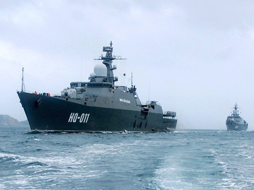 Các tàu hộ vệ tên lửa Đinh Tiên Hoàng và Lư Thái Tổ của Việt Nam đang hoạt động trong vùng biển của cảng Cam Ranh