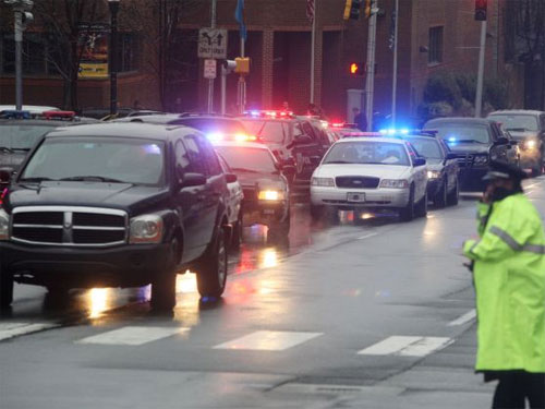 Hàng chục xe cảnh sát và xe cấp cứu đã bao quanh tòa án ngay sau vụ nổ súng. Tòa án sẽ đóng cửa ngày 12-2 để phục vụ việc điều tra và sửa chữa.