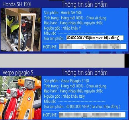 Với chiêu thức bán xe giá rẻ do cơ quan Hải quan thanh lư, một số công ty, đối tượng đang rao bán xe gắn máy các loại trên mạng internet với giá chỉ bằng phân nửa so với giá thị trường, có nhiều dấu hiệu lừa đảo.