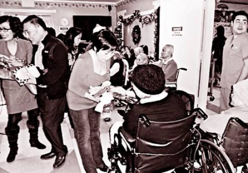 Một nhóm thiện nguyện thăm viện dưỡng lão.