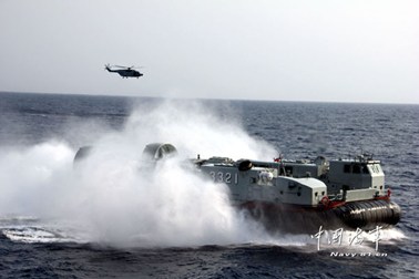 Trong ngày 21/3, biên đội tàu chiến hạm đội Nam Hải và lực lượng Thủy quân lục chiến triển khai diễn tập đổ bộ.