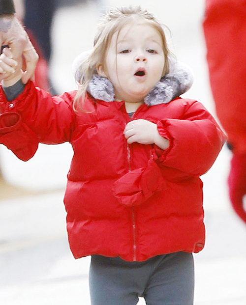 | | Cả tuần trước, Becks bận rộn với chuyến đi quảng bá thương hiệu thời trang cho H&M tại Đức và làm đại sứ bóng đá cho Trung Quốc nên khi trở về Anh hôm đầu tuần, tiền vệ điển trai dành nhiều thời gian bên con. | | | Với việc ba nhóc Brooklyn, Romeo và Cruz đi học, ông bố đảm đang vui vẻ dẫn cô công chúa út Harper dạo phố London sáng qua. Cô bé 20 tháng tuổi nhà Becks nổi bật trên phố với chiếc áo phao đỏ rực rỡ cùng đôi giày thể thao đế mềm phố hợp hai màu đỏ xám giống bố. Quần tất của cô bé cũng tương tự màu quần của bố. | | | Gương mặt trắng hồng, dáng đi lũn cũn khi được bố dắt, Harper khiến những người qua đường cũng phải dừng lại thích thú ngắm nhìn. | | | Công chúa cưng của Becks - Vic vừa đi vừa ngáp. Con gái hơn một tuổi rưỡi, cặp vợ chồng nổi tiếng dự định cho con đi nhà trẻ. Về dự định cho Harper đi lớp, Vic hiểu đây là một điều tốt với con nhưng cô cũng không giấu cảm giác hụt hẫng vì đã quen với hình bóng, nụ cười của cô nhóc khi hai mẹ con quấn quýt suốt ngày. | | | Trong hai cuộc đi dạo cùng bố gần đây, bé Harper đều được mặc trang phục khỏe khoắn, đi giày thể thao trông rất tomboy. | | | Trong khi đó, khi đi chơi cùng mẹ, cô nhóc lại nữ tính và dễ thương với những chiếc áo khoác xinh xắn cùng đôi giày búp bê sành điệu. | Hoàng Trang