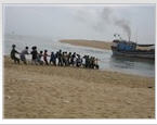Cảnh kéo tàu mắc cạn tại cửa biển Đà Diễn (Tuy Hòa).
