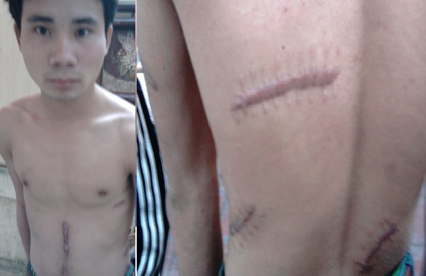 Nguyễn Văn Lộc với nhiều vết chém mà các đối tượng gây nên