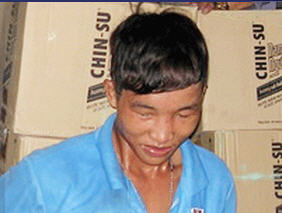 Công việc thường ngày của "triệu phú" Hào Anh (áo xanh) hiện nay là làm bốc vác cho một công ty lương thực để nhận lương công nhật. Ảnh: