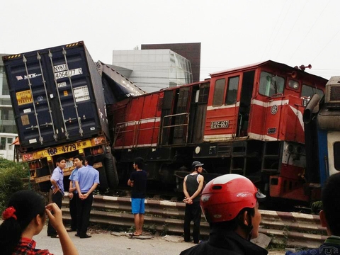 Quốc lộ 5: Tàu hoả xuyên thủng xe container